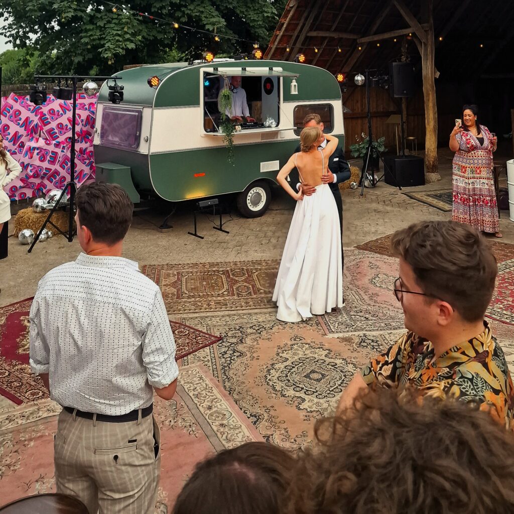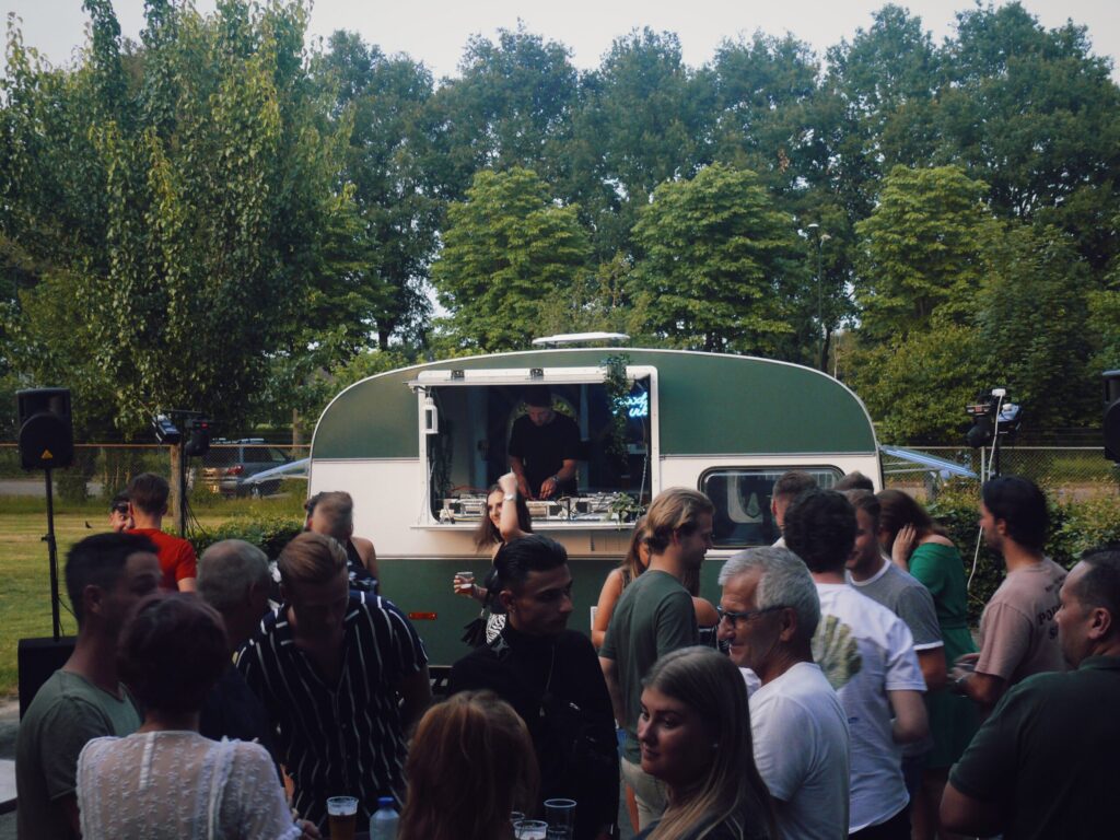 ‘T Caravanneke is de ideale keuze voor jouw bedrijfsfeest vanwege zijn unieke uitstraling. Deze charmante caravan kan dienen als een stijlvolle blikvanger die de achtergrondmuziek verzorgt tijdens een borrel of netwerkevenement, waardoor een ontspannen en gezellige sfeer ontstaat. Maar ‘T Caravanneke kan ook transformeren in een levendige partycaravan die je bedrijfsfeest omtovert tot een onvergetelijk dansfeest. Met professionele DJ’s, hoogwaardige geluidssystemen en indrukwekkende verlichting zorgt ‘T Caravanneke voor de perfecte ambiance, of je nu een ingetogen evenement of een groots feest organiseert. Laat je collega’s genieten van een unieke ervaring en kies voor ‘T Caravanneke om van jouw bedrijfsfeest een onvergetelijke gelegenheid te maken